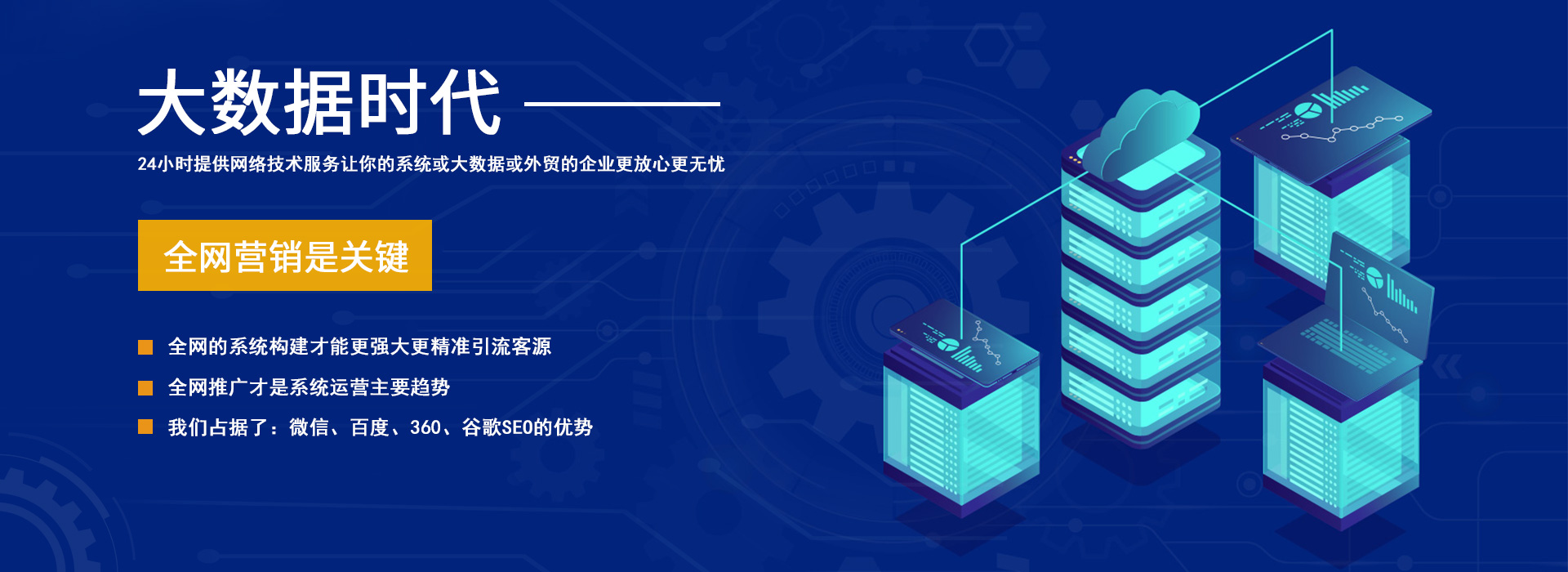 服務(wù)特色:24小時(shí)提供網(wǎng)絡(luò)技術(shù)支持,讓你的系統(tǒng)或大數(shù)據(jù)或外貿(mào)的企業(yè)更放心更無(wú)憂。